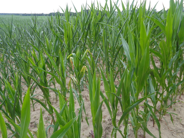 Dziś na specerze w okolicach Szreniawy – kukurydza jakaś zieleńsza. Spotkałem żuka, to już było nas dwóch.: