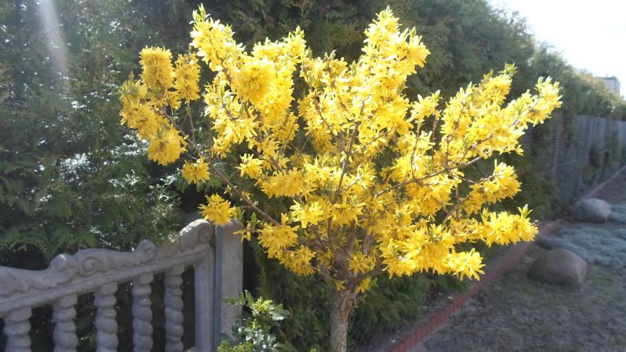 Coś wściekle żółte (jak łódź podwodna). Forsycja?: