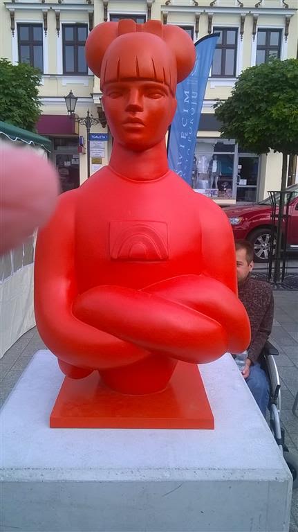 Oświęcim, rynek, rzeźba współczesna. Wypisz wymaluj „Lady In Red”.: