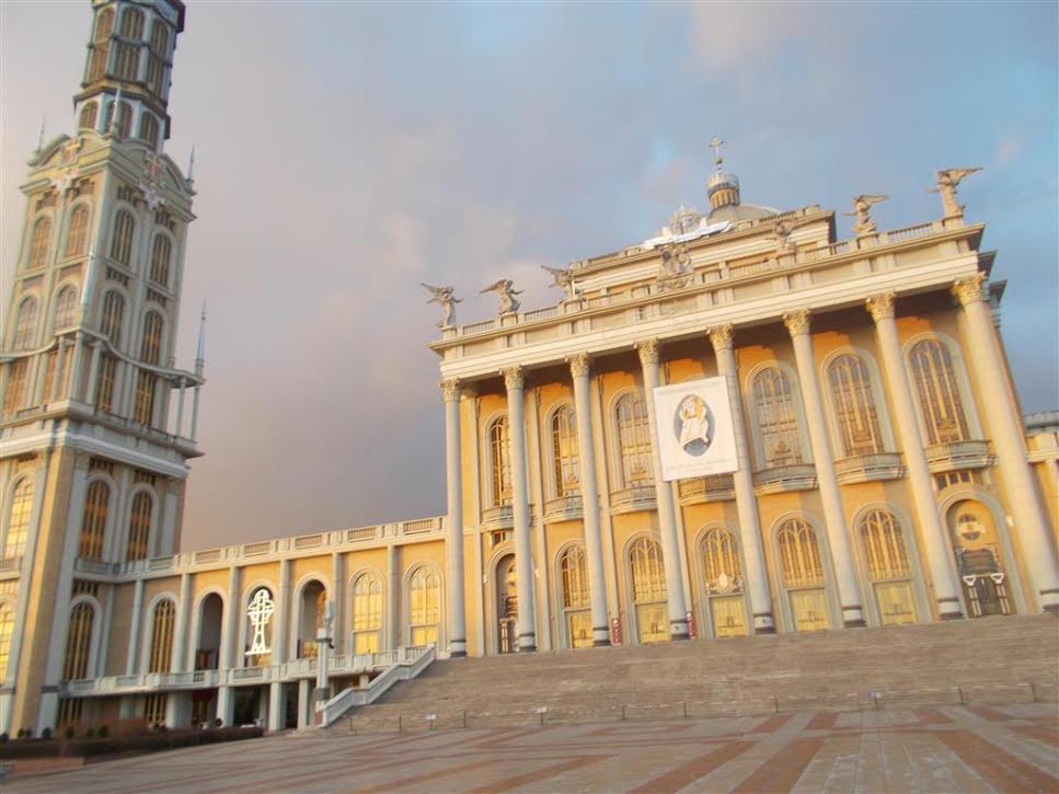 Mówię do Doroty – jedziemy do Lichenia. Bazylika przecudnie opalizuje w zachodzącym słońcu.: