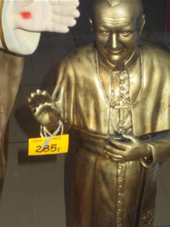Że jest przed sezonem, poznać po ofercie w przykościelnym sklepie. Nasz Papież zrobiony na Chińczyka i ze złota poniżej 300 zł. Zgroza!: