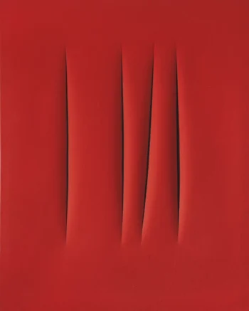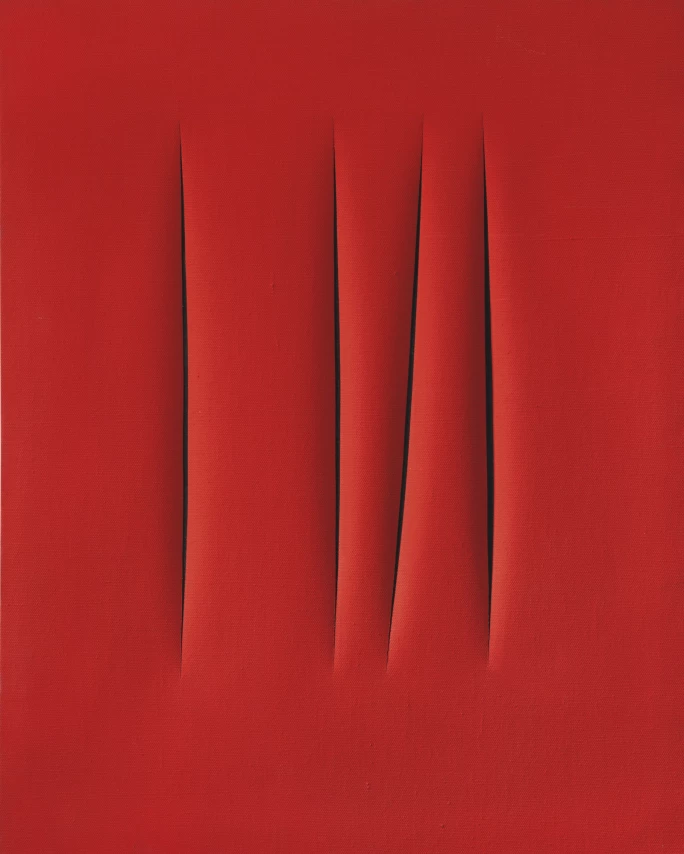 Jedno z wielu podobnych naciętych płócien. Jakieś symboliczne znaczenia, odwołania, interpetacje. Nie lepiej patrzeć na te rysy godzinami i wchodzić w coraz głębszy spokój?