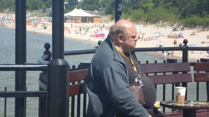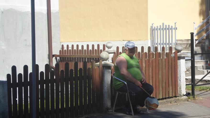 Dorota z kolei fotografowała panów, którzy rzeźbą sylwetki przypominają mnie. Podaję przykłady. Szczególnie zainteresował mnie drugi pan, ten z chorągiewką. Siedział bowiem na chodniku i leniwym gestem wyginał przegub ręki, w której trzymał rzeczoną chorągiewkę. Wskazywał w ten sposób kierunek na parking. I tak – zapewne – od świtu do zmierzchu. Jak to zobaczyłem, skręciło mnie z zazdrości. Dlaczego on??? Dlaczego nie ja??? Przecież ja też mam odpowiednią sylwetkę! Gdzie popełniłem błąd?! Ale los, jak zwykle, sprzysiągł się przeciwko mnie.