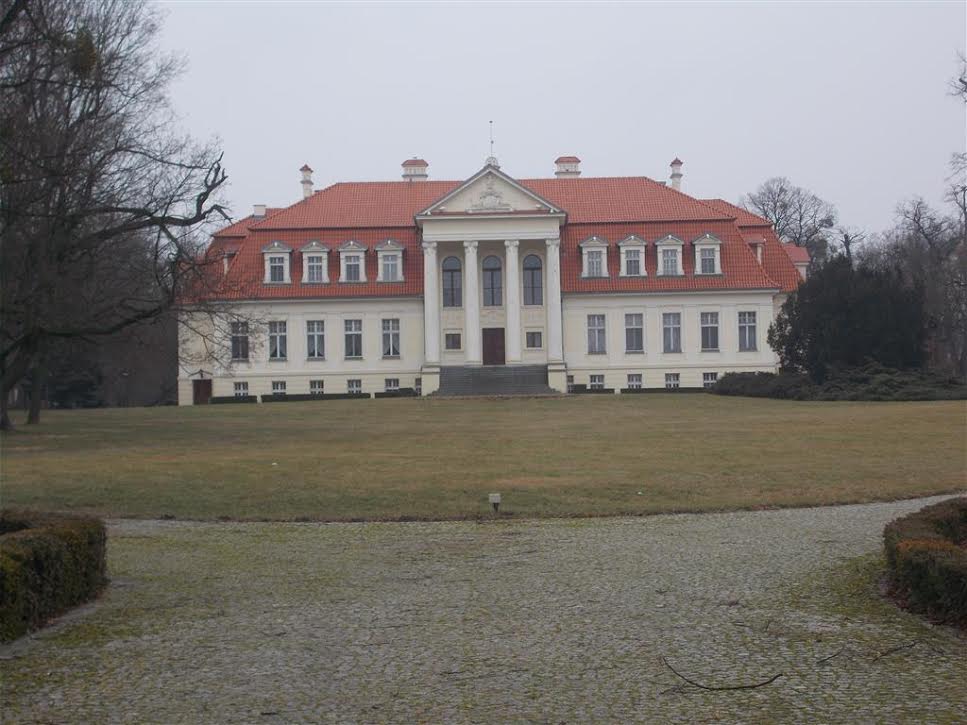 Miał być wyjazd muzyczny, ale udał się tylko częściowo. Bo muzeum J.H. Dąbrowskiego i Hymnu Narodowego w Winnej Górze (koło Środy Wlkp.) okazało się zamknięte do wiosny. Oczywiście marnego słowa o tym na stronie internetowej. Objechaliśmy więc gazon przez tym oto pałacem samochodem. Jak niegdyś Dąbrowski bryczką.: