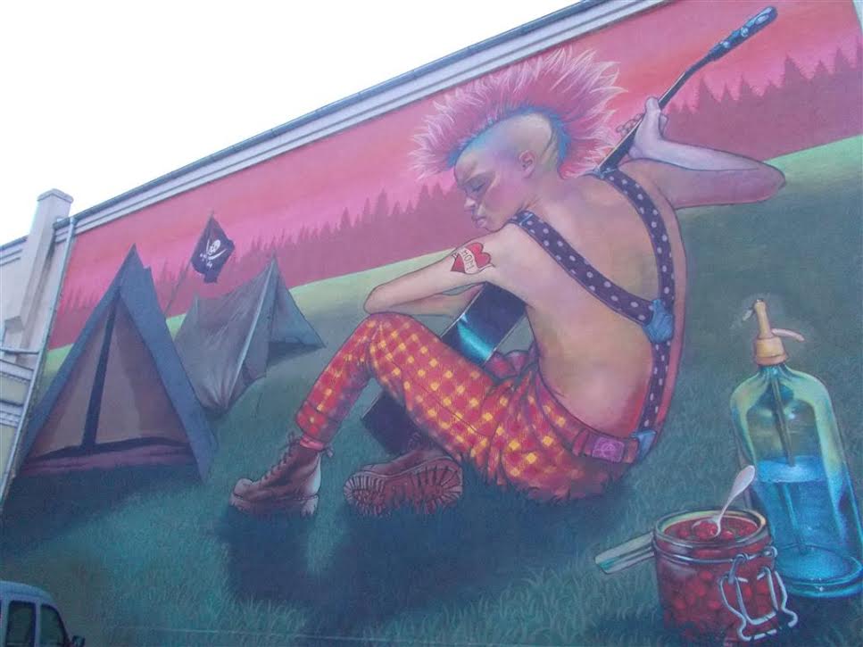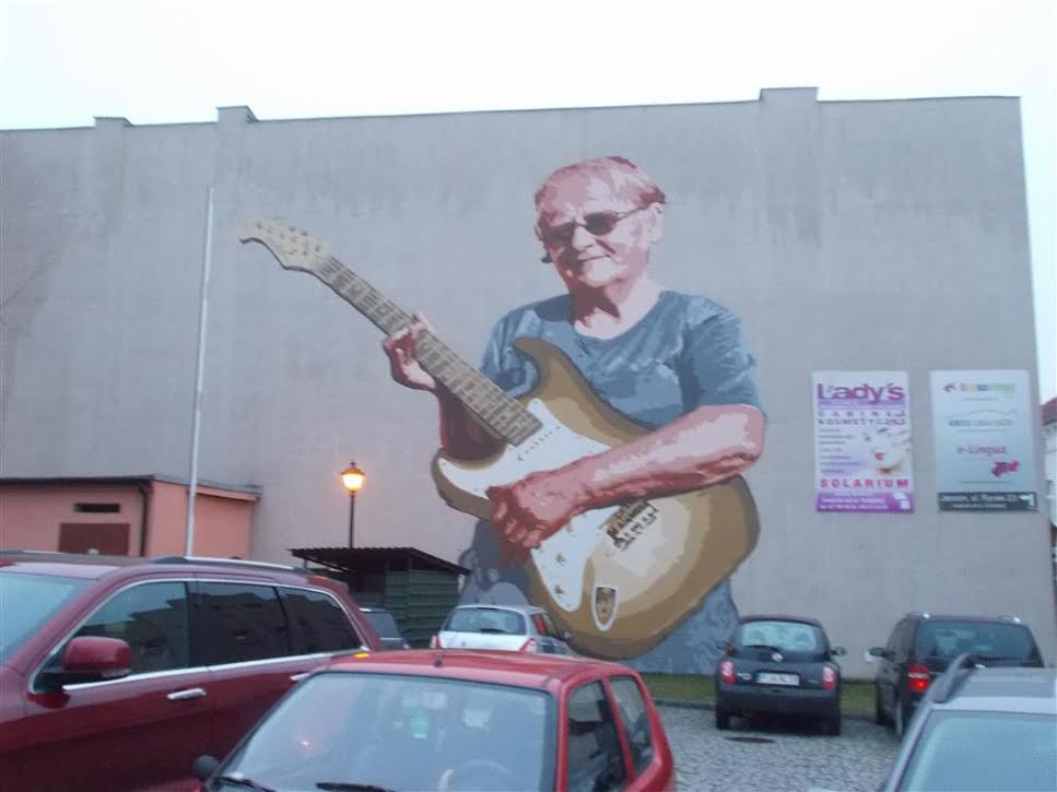 Jeszcze kawałek dalej kolejny mural. Tylko dlaczego na gitarze gra Jerzy Gruza?