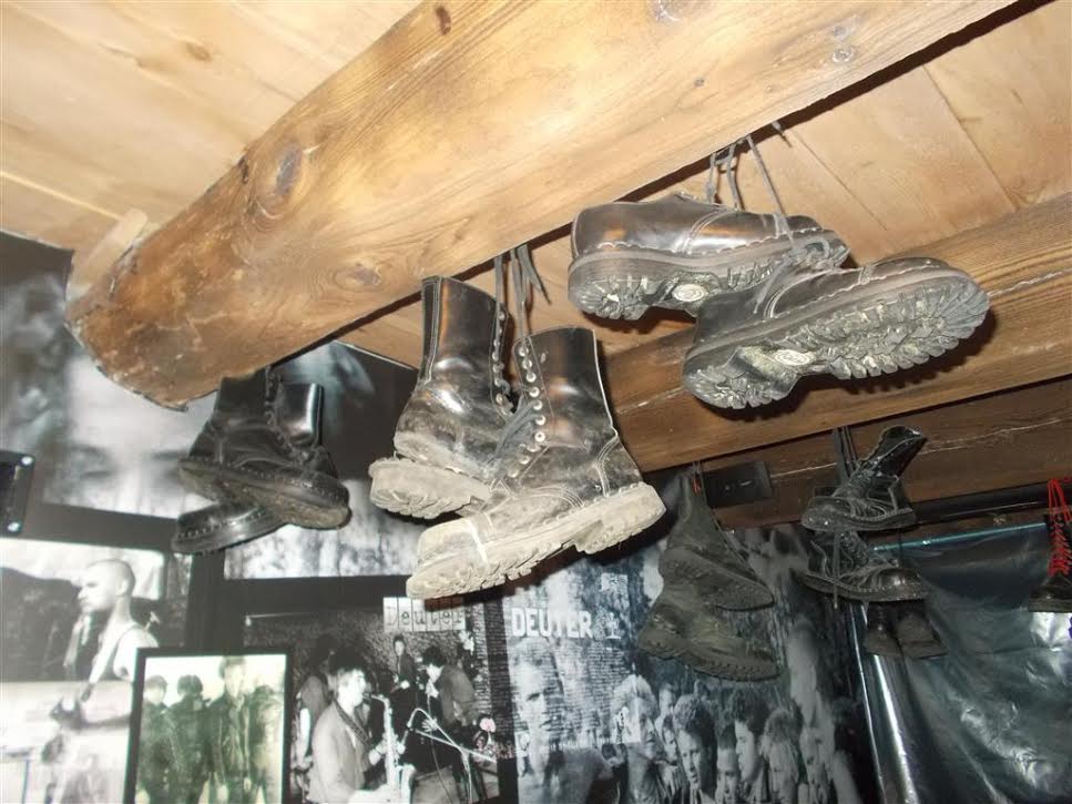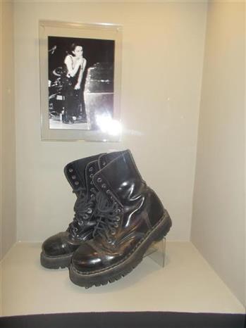 Zabawnie wyglądają glany w muzealnej gablocie za szkłem. Eksponat!: