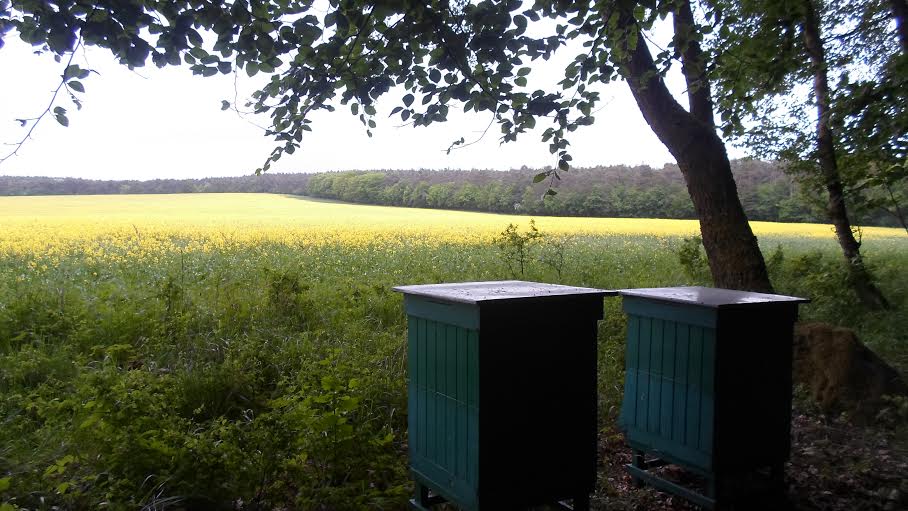 Na obrzeżach pól rzepaku poustawiali ule, żeby pszczoły miały bliżej. A tu pochmurno i popaduje. Choć miód ledwo o parę kroków. Cóż, życie owadów także bywa tragiczne.: