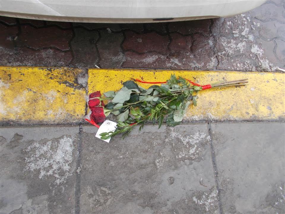 Na chodniku pod Pałacem Kultury wzgardzona róża.