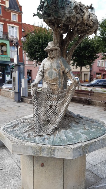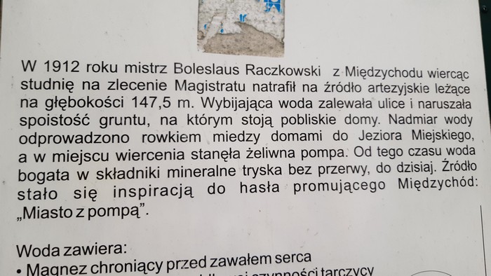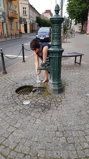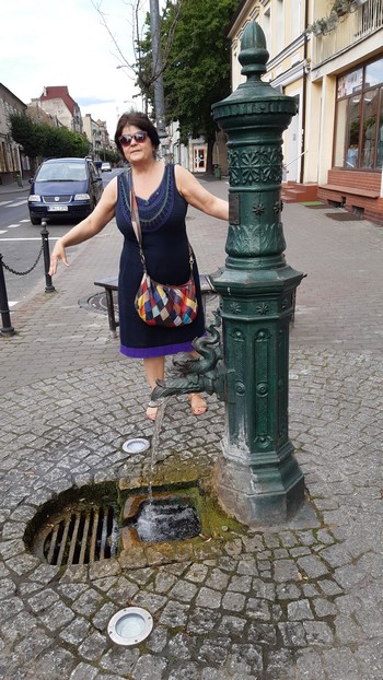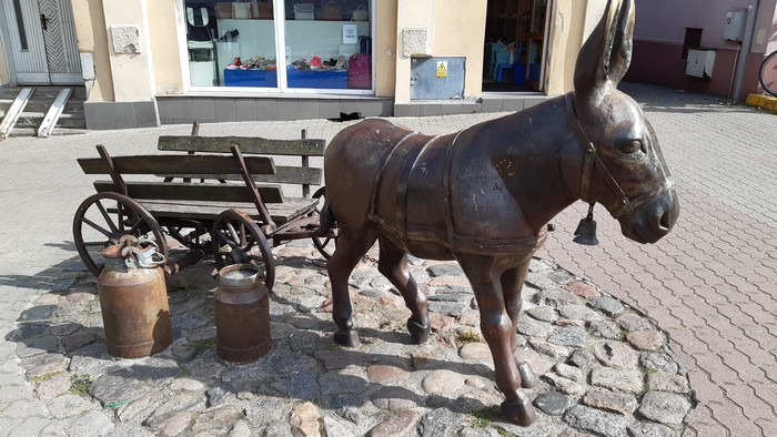 Międzychód (Lubuskie). Ostatni raz byłem tu w październiku z wykładem inauguracyjnym Uniwersytetu Trzeciego Wieku. Był wieczór, nie obejrzałem więc ani tego osiołka (kolejny w Wielkopolsce, czy to coś znaczy?) ani tej kultowej laufpompy z wodą mineralizowaną (w smaku nuta zgniłojajeczna, jak np. w Szczawnicy):