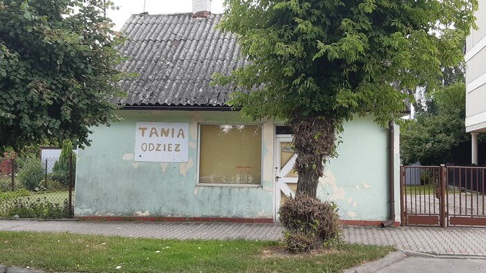 Z trasy. Brodnica. Wszystko po staremu. Zakład krawiecki mieści się nad rzeką.: