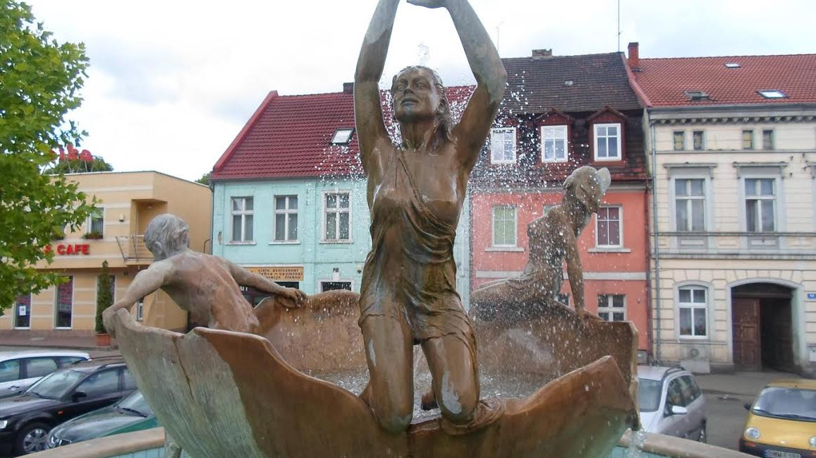 Zaległości. Lubuskie, miasteczko Sulęcin. Tu mają coś z nieletnimi dziewczętami. Pod kościołem gęsiareczka z ludowej legendy (zapewne prasłowiańskiej, jak to na tych terenach).: