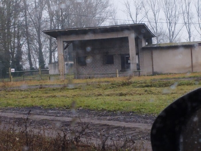 Na kultową portiernię PGR Konarzewo patrzymy przez szybkę mobilnego biura.: