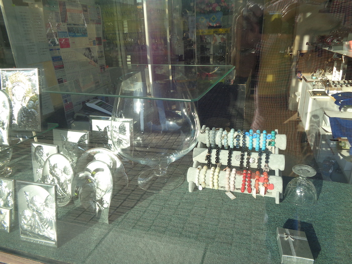 Na chwilę w Mosinie. Wszystko niby po staremu. Ale na wystawie sklepu z dewocjonaliami lampka koniakówka. Tak, to zdecydowanie mój rozmiar.: