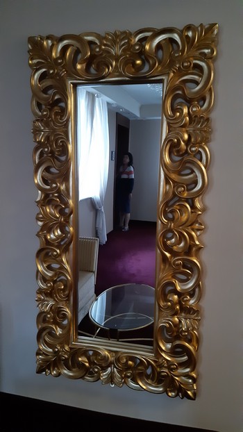 Rzeszów. Zatrzymaliśmy się w wyjątkowo wytwornym hotelu. Zasłony całe w kryształach, a na korytarzach lustra w złotych ramach.: