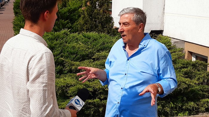 Po zmianie koszuli już dla innej telewizji o Festiwalu w Wenecji.: