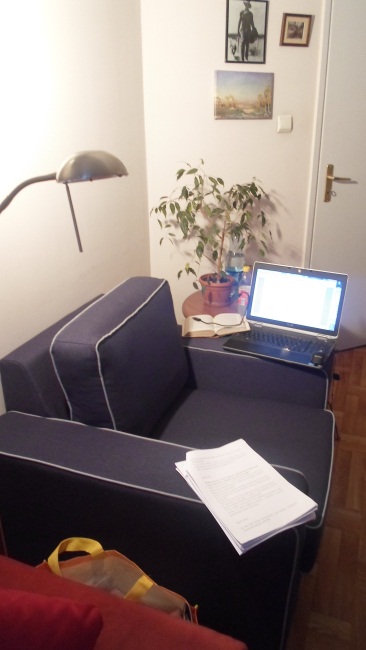Marudziłem, że bytuję tak ponuro, a to nieprawda. Wczoraj Dorota kupiła mi (z dostawą) nowy komplet wypoczynkowy – łóżko jak lotnisko i fotele. No i teraz mam w pokoju cztery fotele – i pogrzeb.