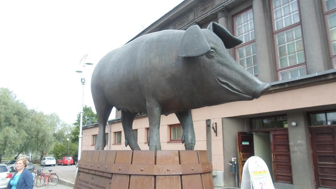 Estonia. Tartu (Dawniej Dorpat). Główny cokół w mieście. Gogol „Martwe dusze”: „W naszym mieście tylko jeden porządny człowiek: prokurator. Ale i ten, prawdę mówiąc, świnia!” Kiedy my dociągniemy do ich poziomu?: