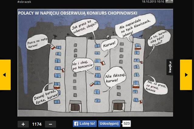 To nieprawda, że wszyscy żyją wyborami. Niektórzy pasjonują się wyłącznie Konkursem Chopinowskim. Bardzo przekonuje mnie mem, który krąży po sieci.: