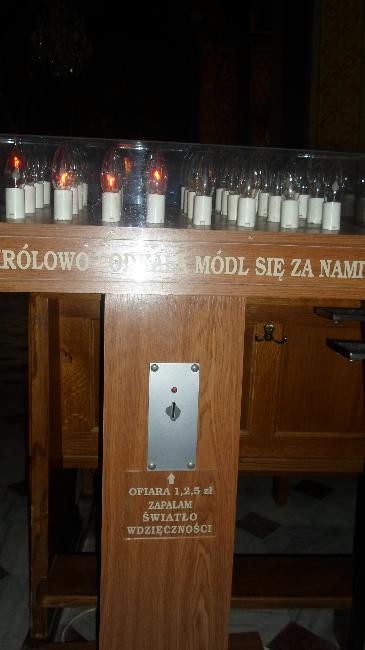 W tym samym Ludźmierzu w sanktuarium Gaździny Podhala rejestruję postęp technologiczny. Po kościołach widywałem świeczki do zapalania przed ołtarzem. Ale z tego kopeć i mnóstwo smrodu. W Ludźmierzu wystarczy wrzucić monetę i zapala się świeczka elektroniczna. Oczywiście – im więcej monet, tym więcej świeczek. Dorota wrzuciła sporo za moją czarną duszę. Ale się należało.