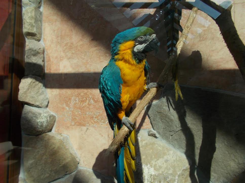 Nasz hotel prócz spa, basenu, nocnego barku oferuje jeszcze papugi na korytarzu. Niestety, w klatce.: