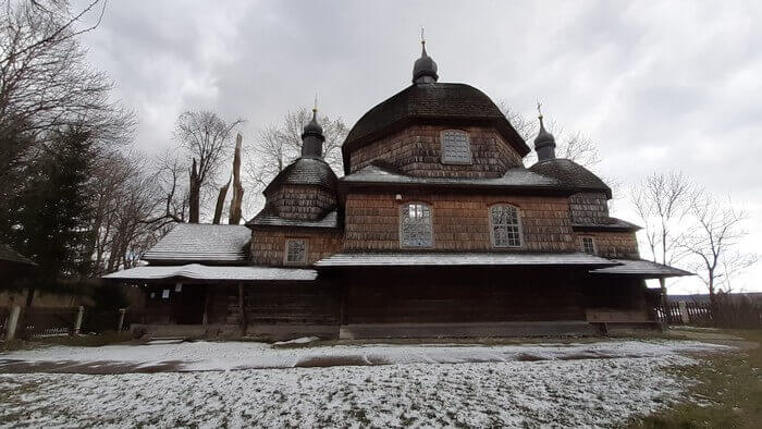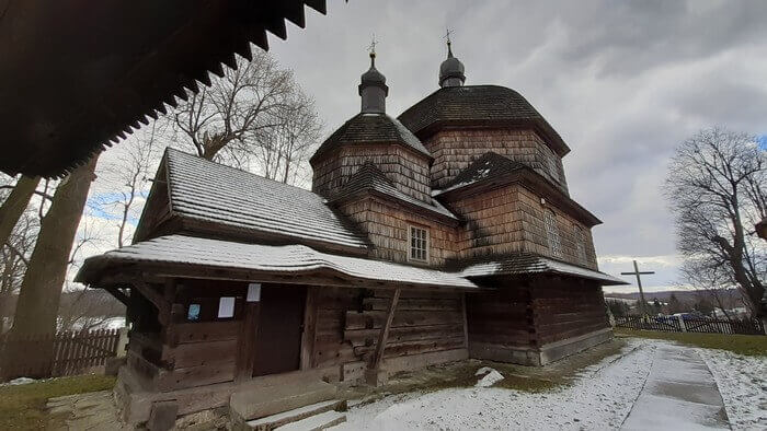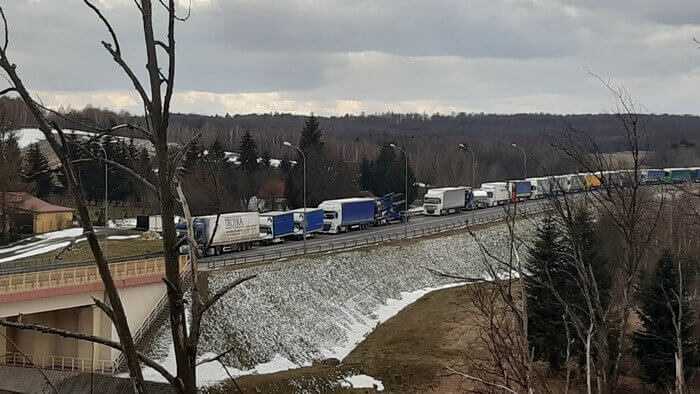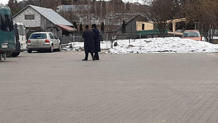 Hrebenne, na granicy z Ukrainą. Cerkiew i kolejki tirów należą do pejzażu. Chasydzi na parkingu Biedronki w zasadzie też.: