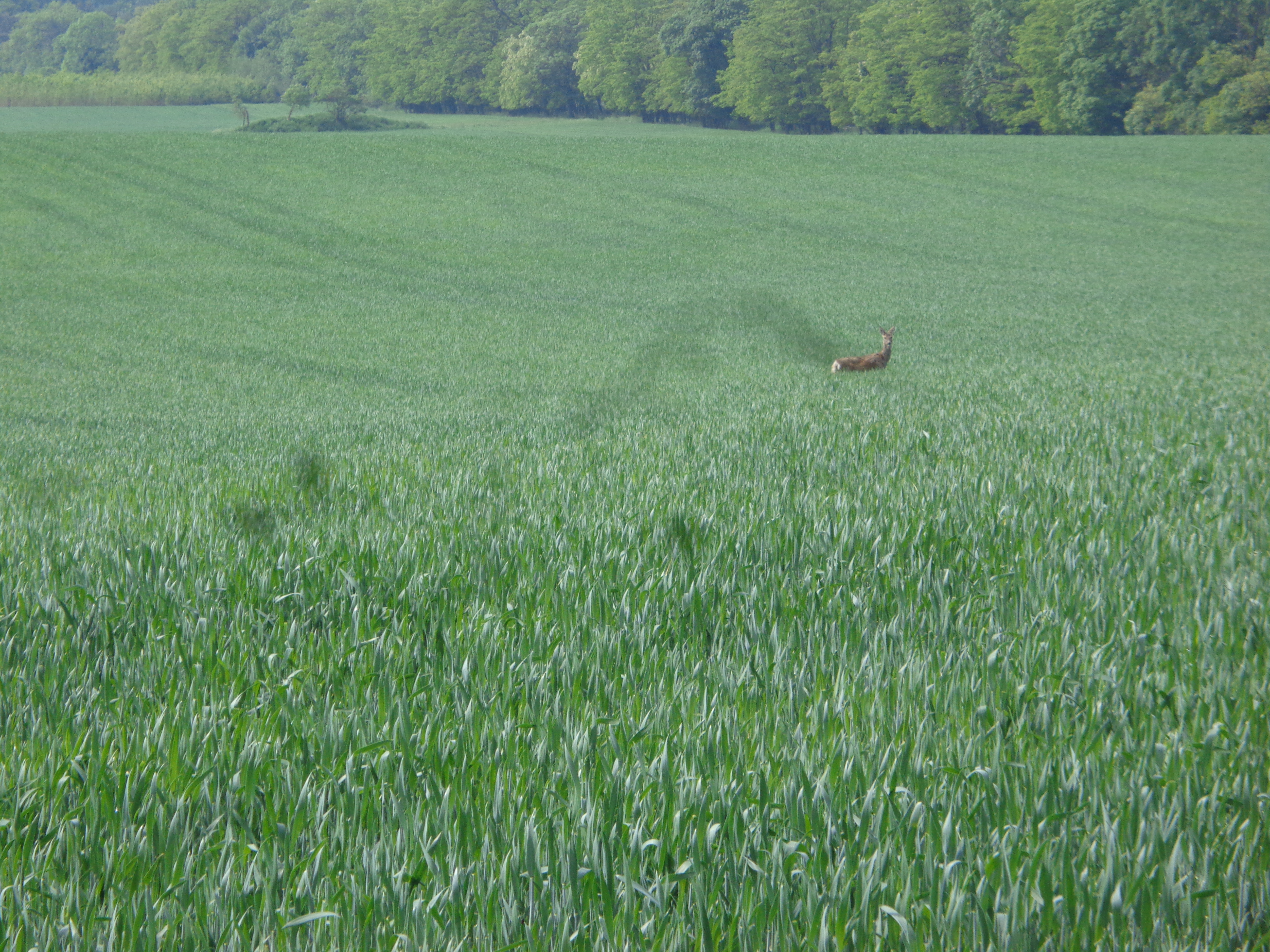 Po ostatnich deszczach zielone strasznie wystrzeliło. Ten jelonek w zbożu to oczywiście Marian.: