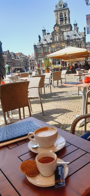 Z trasy. Holandia. Drobiazgi. Kawa na rynku w Delft. Pod rynkiem parking.: