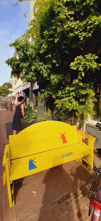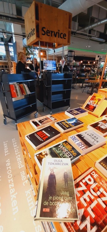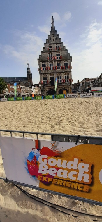 Gouda. Na rynku urządzono teren do siatkówki plażowej. My do znanje już sobie kawiarni połączonej z księgarnią i czytelnią.: