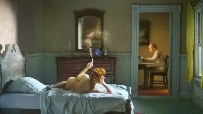 Tak współczesny malarz pastiszuje mojego ulubionego Edwarda Hoppera.: