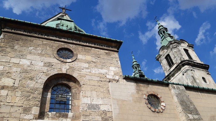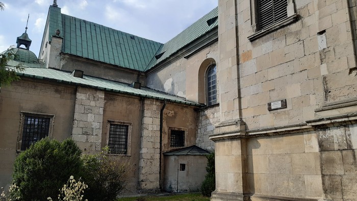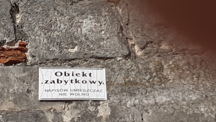 Jędrzejów. Opactwo cysterskie. Ale z tymi napisami na murach to ojcowie nie są konsekwentni. Proszę spojrzeć pod okap.: