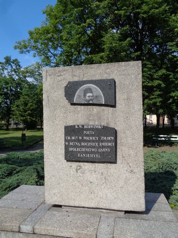 I Zaniemyśl nad jeziorami. Ktoś porąbał tablicę pamiątkową ku czci poety Berwińskiego. Może nie lubi jego wierszy? Ale żeby aż porąbać..?! Ten Berwiński ciągle o sobie przypomina, bo nieustannie jeżdżę do Radia Poznań, które jest właśnie przy Berwińskiego.: