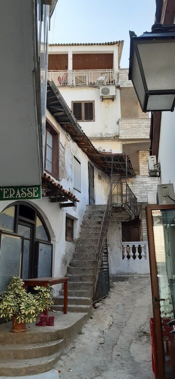 W Tiranie nasz (nowy!) GPS zgłupiał. Zupełnie nie rozpoznawał miasta. Nawet nas to nie zmartwiło. Zjechaliśmy w rezultacie miasto po przekątnej. Zatrzymaliśmy się na przykładowym skrzyżowaniu.: