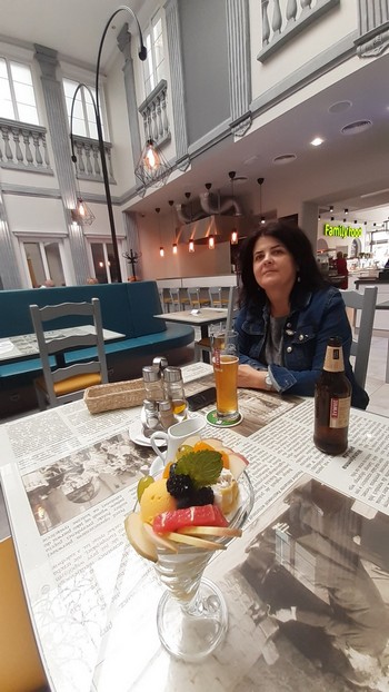 Ponieważ wszystko pozamykane, na deser lodowy z konieczności do Gniezna. Ale już za chłodno na dworze, wiec w tej samej restauracji, ale już od środka.: