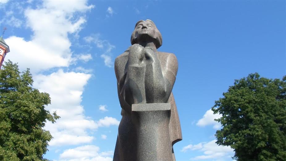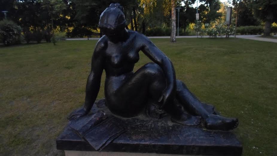 W Druskiennikach odkryliśmy rzeźbę, do której pozowała Dorota. Proszę zwrócić uwagę, że jako bibliotekarka wykorzystuje każdą sposobność do propagowania czytelnictwa.: