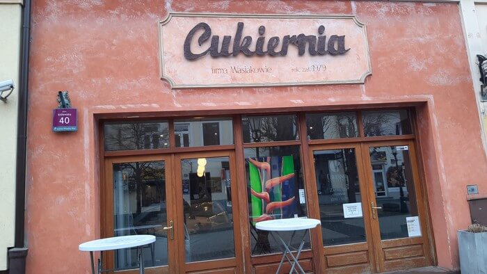 Kutno, „okrutne Kutenko”. Cukiernia spod której latem nadawałem na żywo do TVN24. Teraz – makieta.: