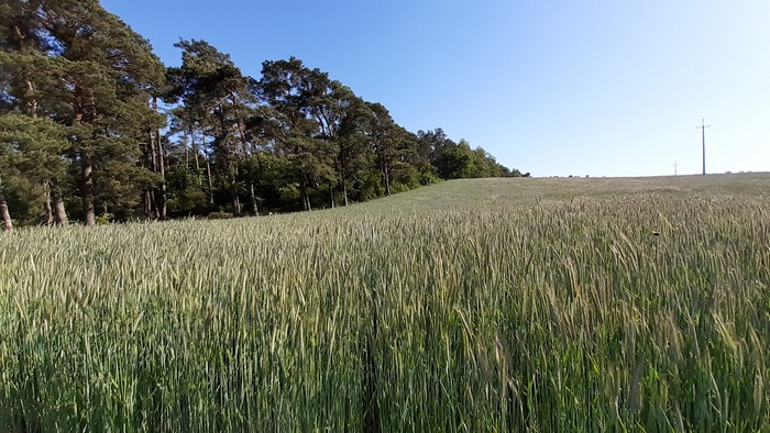 Żabno, kawałek za Mosiną. Dawny cmentarz ewangelicki (osadników z Zachodu, olędrów), który zawsze mijaliśmy. Wszystko w zbożu.: