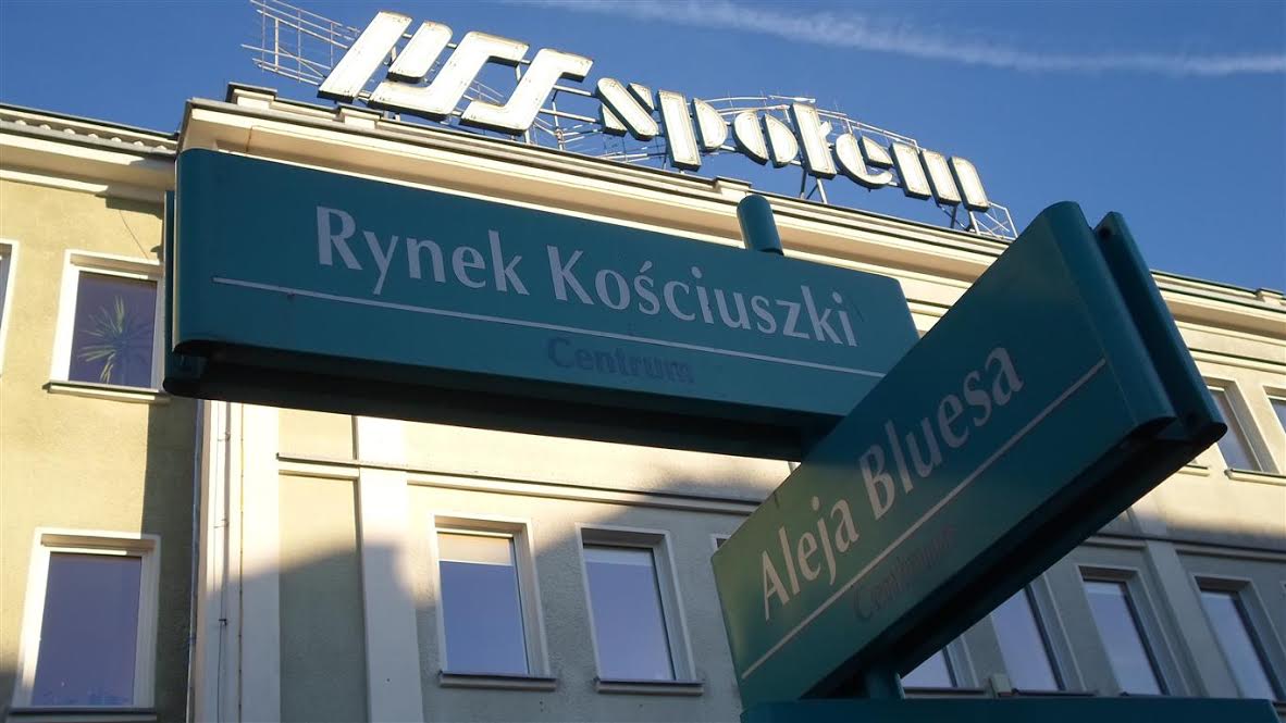 Poza tym zawsze miło znaleźć się w miejscu osobliwym. Białystok. Skrzyżowanie Sienkiewicza i Bluesa. Społem w tle.: