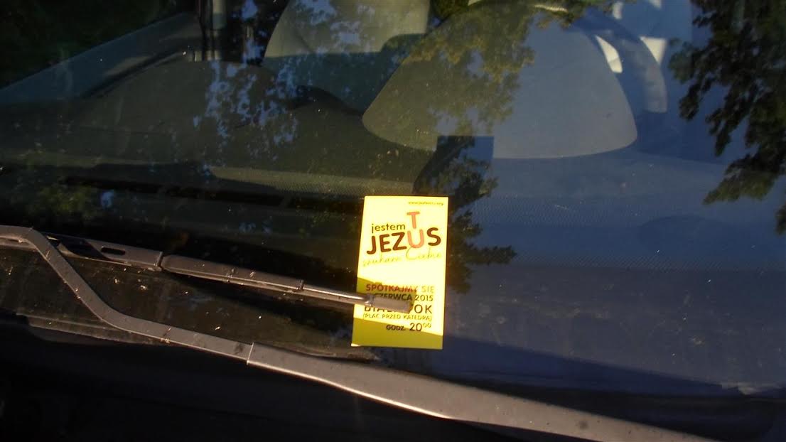 Idziemy w kierunku samochodu. Dorota z daleka zobaczyła kwit za wycieraczką i krzyczy: „- Jezus Maria!”. Bo myślała, że to mandat za złe parkowanie. To nie był mandat. Ale coś na rzeczy było.: