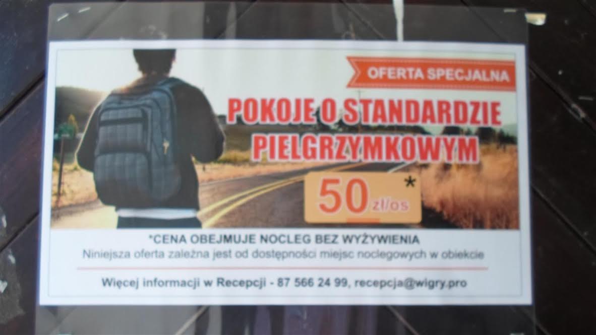 Na jeziorem wigierskim słynny klasztor pokamedulski. Z pewnym zawstydzeniem przeczytaliśmy ofertę hotelową. My z Dorotą, w naszym rozpasaniu, nigdy dotąd nie korzystaliśmy ze „standardu pielgrzymkowego”. Nostra culpa, nostra maxima culpa.: