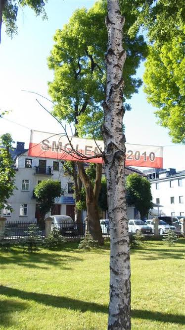 Rzadko które miasto tak czci ofiary Smoleńska jak Augustów. Obok tablicy pamiątkowej, odpowiedniego transparentu, posadzono też odpowiednią brzozę. Znaczy – od razu złamaną.: