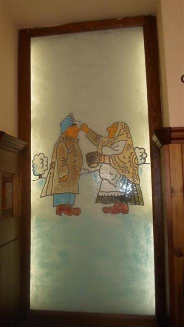 Przysiedliśmy na chwilę w knajpie przy Vaclavskich Namestiach. Ta para namalowana na szkle bardzo przypominała nas dwoje.: