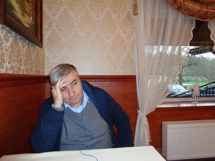 Skoczyliśmy do Spały (gdzie nigdy jeszcze nie spałem). Spacerujemy, a tu pewnemu panu w dość pokaźnym volkswagenie popsuł się rozrusznik. Więć uprosił przechodzącą panią, by usiadła za kierownicą, a mnie wciągnął do pchania samochodu. W porządku. Tylko w międzyczasie ta pani za kierownicą zapomniała, co trzeba zrobić, żeby pchany samochód zapalił. My więc pchamy z całych sił i drzemy się: „Dwójka, sprzęgło! Dwójka, sprzęgło!” Kiedy pani wreszcie usłyszała i zrobiła, co trzeba, a wóz zapalił, byliśmy obaj wykończeni (na zdjęciu wracam do siebie przy kawie). A przecież Spałę kochamy nie tylko za to.:
