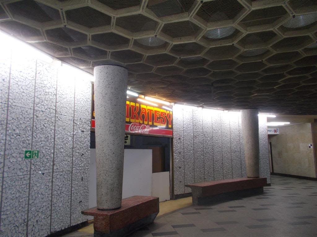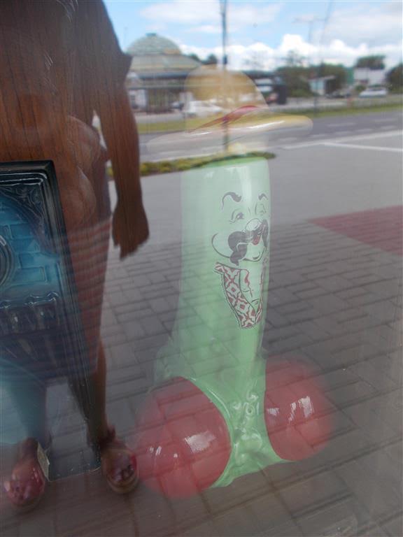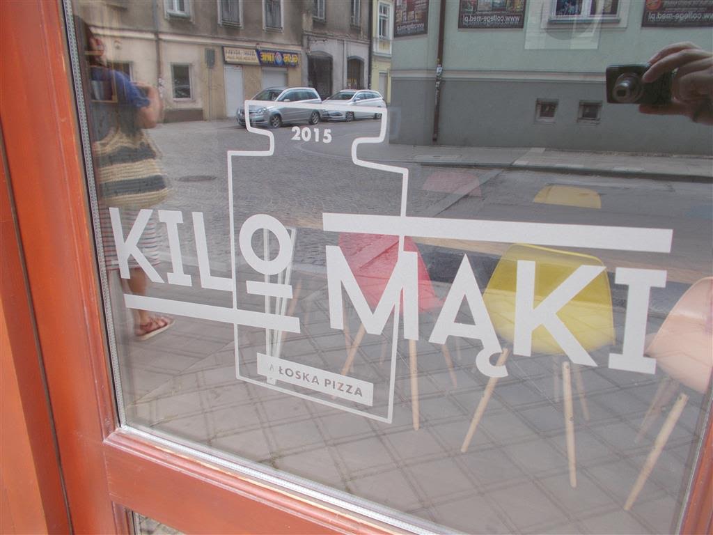 Albo jak facet, który projektował witrynę sklepu z zachodnimi alkoholami. W szybie Franc Maurer i Johny Walker. Odbija się rzeczony dworzec.: