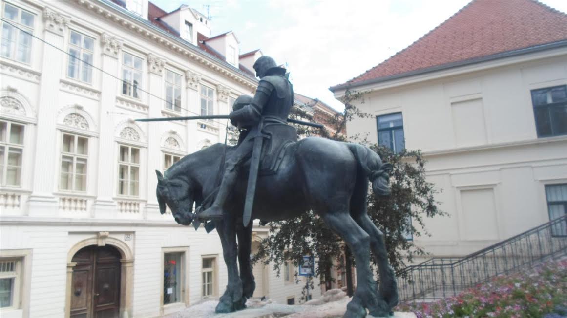 Na starówce w Zagrzebiu (Chorwacja) pomniki, pomniki. Jak na każdej starówce. Jak to miło, że nie muszę wiedzieć, o co chodzi wszystkim tym smutnym rycerzom.: