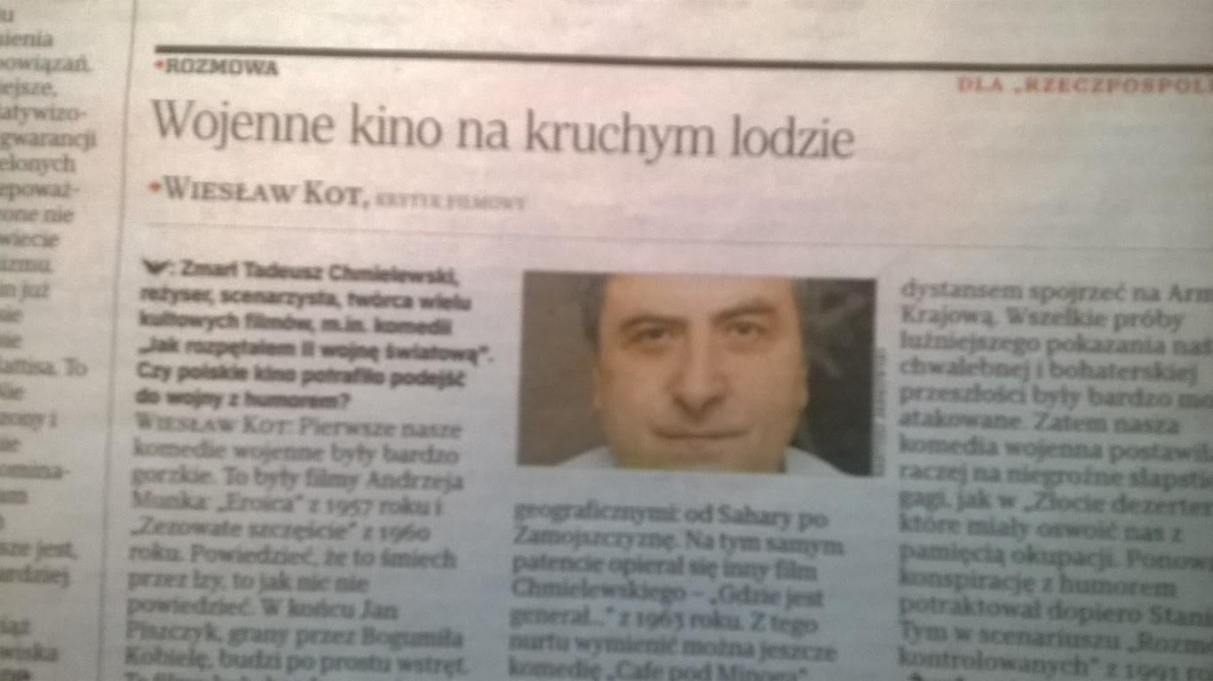 Zmarł reżyser Tadeusz Chmielewski („Ewa chce spać” itd.). Z tej okazji Romek Rogowiecki trzymał mnie przy mikrofonie radia RDC (przez telefon) prawie godzinę. I jeszcze dwa zdania do „Rzepy”.:
