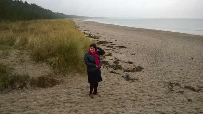 Plaża w mżawce plus Dorota (pośrodku).:
