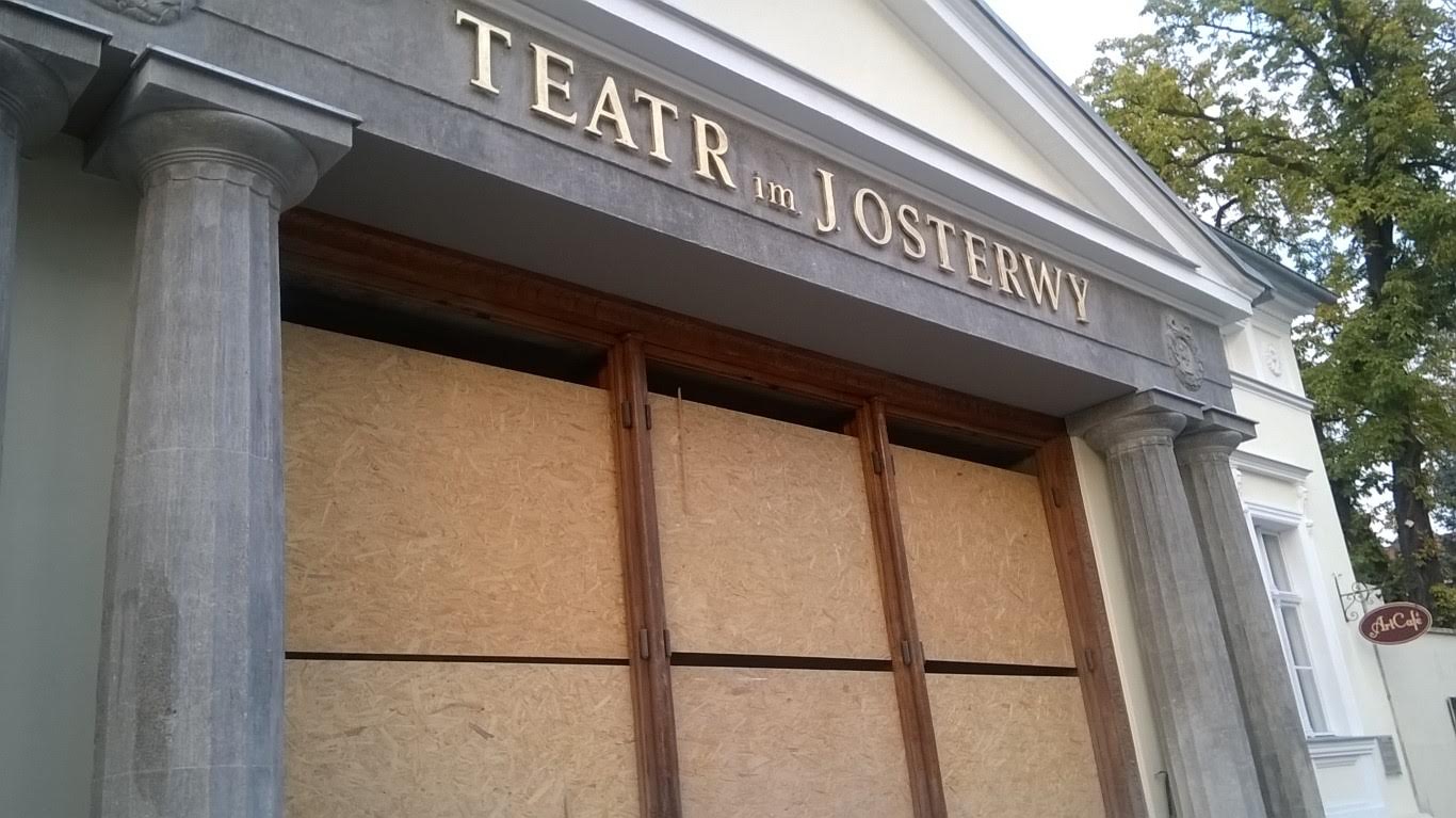 A potem już Gorzów. Teatr od przodu zabity jest paździerzem, ale nie szkodzi. Właśnie występowała ekipa z Warszawy z Małgorzatą Foremniak. Trudno było znaleźć miejsce na parkingu.: