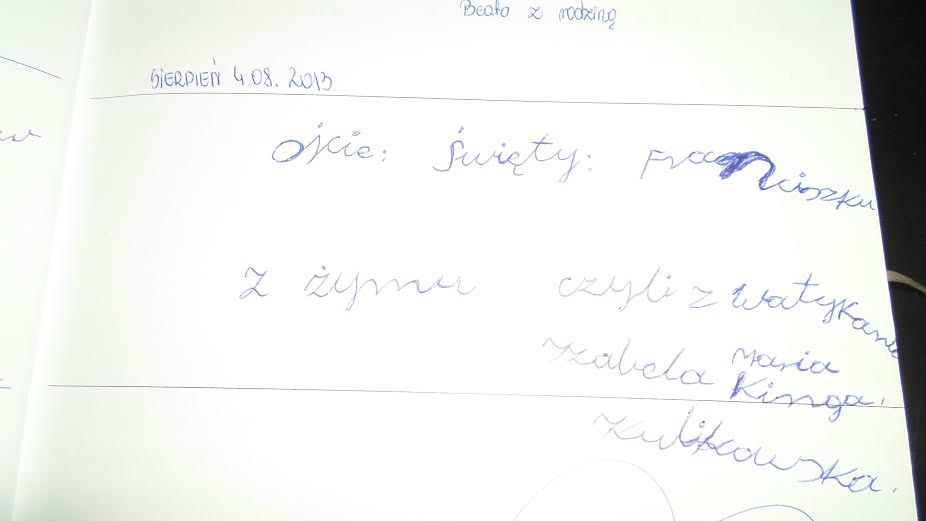 Dorota wczytała się w wyłożoną w kruchcie Księgę Próśb. Wierni zazwyczaj proszą za  innych: „Żeby się opamiętali, nawrócili, zerwali z nałogiem…” A przecież najciekawsze są wpisy z lekka odjechane: