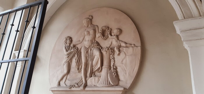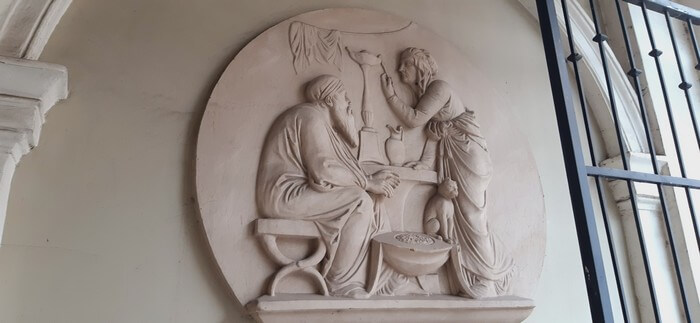 W Gnieźnie na tatarze w ulubionej restauracji z nestorem u wrót. I urocze reliefy w pobliskiej bramie. :