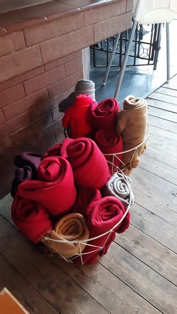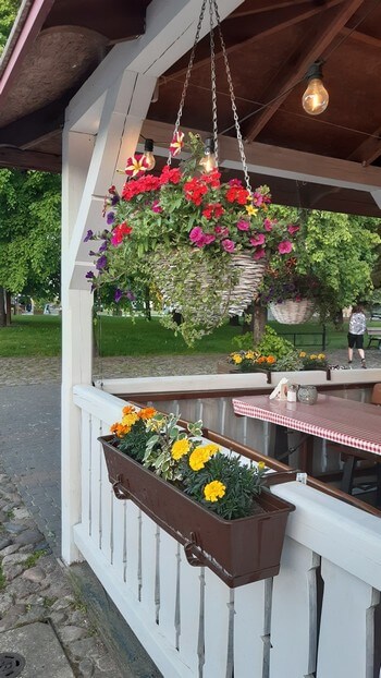 Wieczorna kawa w Supraślu nad rzeczką Supraśl. Komary tną – wyposzczone po lockdownie. Stąd w koszykach koce ochronne. Ale niewiele to pomaga. Atakują mutanty polsko-litewsko-białorusko-ukraińskie, france.: